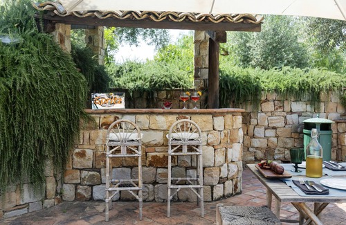 Please notice that photos are taken in spring, therefore flower blossoming, and the colours of the gardens' grass could be different at the moment of your arrival at the villa.