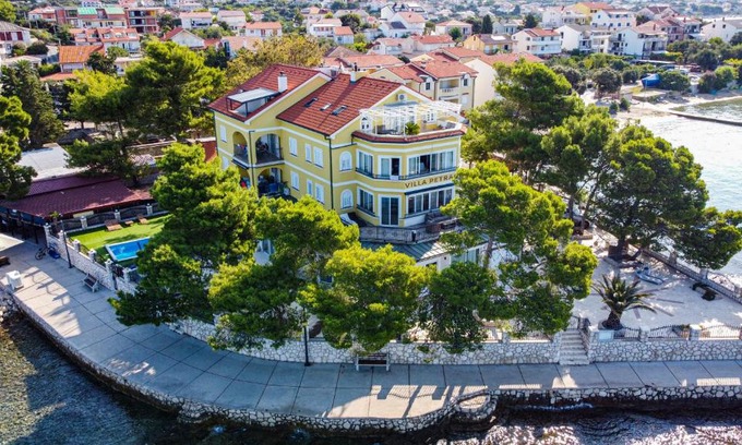 Just a few steps from Petrac Beach and a 1-minute walk from Padova III Beach, Villa Petrac - App1 features accommodations in Rab with a garden. This beachfront property offers access to a terrace, free private parking, and free Wifi. On clear days, guests can head outside to enjoy the apartment's outdoor fireplace. The air-conditioned apartment consists of 2 separate bedrooms, 1 bathroom with bathrobes, a seating area, and a living room. A flat-screen TV with satellite channels is featured. For added privacy, the accommodation features a private entrance. For those nights when you'd rather not eat out, you can cook in your kitchen. Padova II Beach is a 9-minute walk from the apartment. The nearest airport is Rijeka Airport, 43 miles from Villa Petrac - App1.