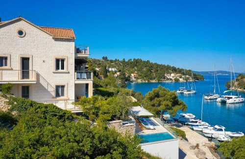 VILLA PHILIPPA - luxurious five-room villa - idyllic location - first row to the sea - spectacular view of the sea bay - unforgettable sunsets - 15 minutes from Supetar ferry port - free parking - private pool offers accommodations in Sutivan, a 11-minute walk from Beach Bobovisca and 11 miles from Olive Oil Museum Brac. This beachfront property offers access to a balcony, free private parking, and free Wifi. The pool features a fence and garden views. Providing a terrace and sea views, the spacious villa includes 5 bedrooms, a living room, satellite flat-screen TV, an equipped kitchen, and 4 bathrooms with a bidet and a bath. Featuring air conditioning, this unit has a dressing room and a fireplace. The property has an outdoor dining area. The villa has a garden for your convenience, along with a private beach area. Gažul is 12 miles from VILLA PHILIPPA - luxurious five-room villa - idyllic location - first row to the sea - spectacular view of the sea bay - unforgettable sunsets - 15 minutes from Supetar ferry port - free parking - private pool, while Vidova gora is 13 miles away. Brac Airport is 22 miles from the property.