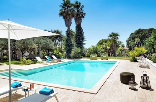 The villa is surrounded by a beautiful Mediterranean garden, with large terraces and a private swimming pool.