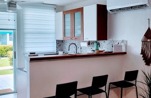 Garden Apartment, 1BR with 2 pools and direct access to the beach. A comfortable living room, all spaces with A/C , 1 full bathroom, Wifi , Smart TV's in all rooms & gated Parking.