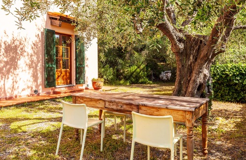 The villa is surrounded by olive trees and boasts a private outdoor area with a pool and 3 covered terraces.
