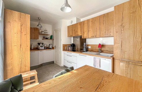 This bright and friendly holiday home offers you a cosy temporary home while you and your loved ones explore the charming sights of the region. Conjure up delicious dishes using fresh ingredients from the market and plan your adventures over harmonious meals at the inviting dining table. Relax on the cosy sofa after a long day, immerse yourself in a good book or an exciting board game.