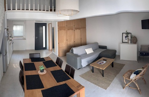 villa totalement rénovée et équipée d'un confort moderne dans un quartier résidentiel calme et central de LGM . Equipée de la clim, du wifi et d'une piscine partagée par la co-propriété, elle est aussi proche de la plage, des centres aquatique Gd bleu, de la Thalasso/spa.