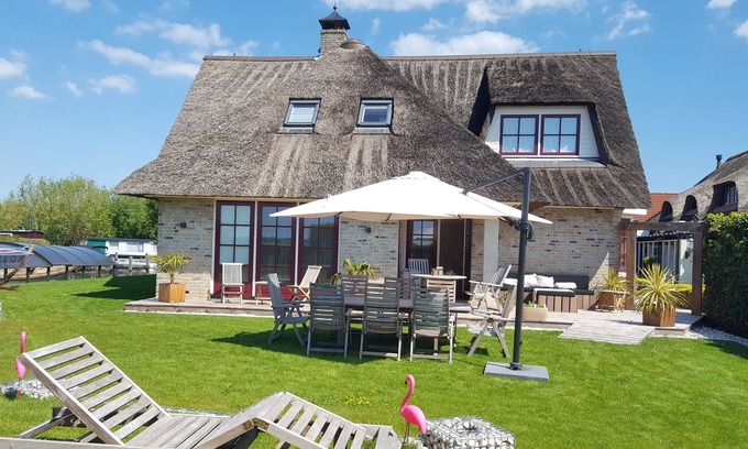 Villa pura vida is located in a unique part of the Netherlands: in the middle of the Randstad and in a Dutch polder landscape. By the water with large garden and wide view. Connected via the Zevenhuizervaart to the Kagerplassen. Spacious, luxuriously furnished and fully equipped. Large Ofyr BBQ and outdoor kitchen. Wood-fired hot tub in the garden, sauna with relaxation area in the houseboat, beautiful 12-person sloop in the boathouse and 2 canoes ready for departure. (optional) To enjoy !