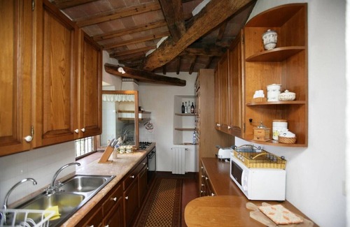 The property is composed by two independent apartments. The interiors are characterised by ceiling exposed beams and terracotta floors and furnishings are typical of the Tuscan style.