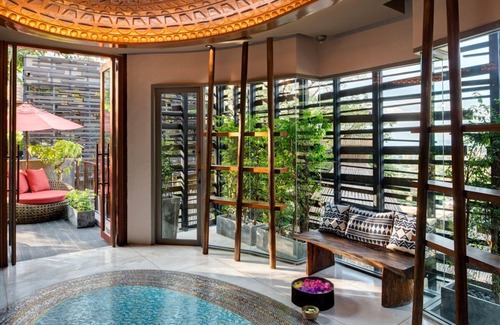 Inside, you'll find an inviting oversized bed, a spacious bathroom with a freestanding bathtub, and a monsoon shower that lets you indulge in moments of calm. Modern comforts include high-speed internet, a 42” LED TV, and locally sourced toiletries. With personalized villa host service and a private, tranquil atmosphere, this is a retreat where creativity and comfort seamlessly blend.