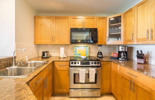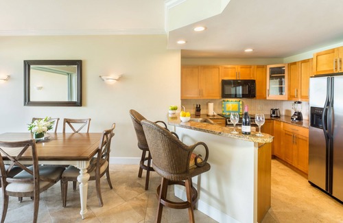 Unwind in the king-sized bed in the master bedroom with a view of the pool, a private bathroom, and two spacious closets to ensure you have ample space for your belongings. The second nautically-themed bedroom features two twin beds, a TV, and abundant natural light with views of the pool. The living room boasts a 55-inch flat-screen TV and a Bose surround sound system, transforming your evenings into a cinematic experience. Keep everyone entertained with our selection of DVDs, games, and books. Our fully equipped chef's kitchen is a culinary delight! From toasters to coffee makers, mixers, and more, it has everything you need to whip up delicious meals. Create culinary masterpieces and dine with a view in your private paradise.