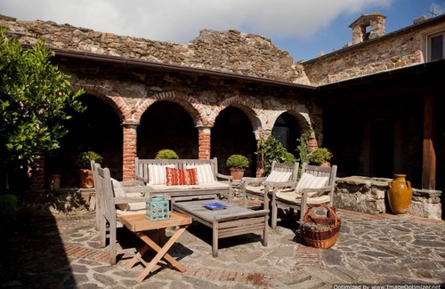 Cinque Terre Delight is an elegant farmhouse that dominates the bay of Monterosso in the heart of the Cinque Terre. Perched on the hillside, about 2-1/2 miles above the town, this magnificently restored property offers fantastic views and is perfect for larger groups wishing to explore the Cinque Terre. There are 5 bedrooms and 5 full bathrooms. The name Cinque Terre refers to five self-contained villages which seem to dramatically cling to the very edge of cliffs. These cliffs offer distinct terraced vineyards that produce a local dry white wine. Make sure to explore the local villages or take a boat or train ride to La Spezia-Genova. The farmhouse itself dates back as far as the year 1200 and was originally a hermitage. It was later turned into a parsonage and upon request the small antique chapel that is attached may be visited. It may also be rented for fantastic weddings where an elegant reception may be set up in the garden area. The open surroundings and large size of this villa make it a perfect vacation spot for large family gatherings or for a group of friends. With a good variety of indoor and outdoor living spaces even large groups can either congregate or enjoy privacy and relaxation. Included is a parking space in Monterosso(something very hard to come by), which is only a five minute ride. For those who don\'t want to drive, the bus stop is only 700 yards away, just in front of a local restaurant. The villa is surrounded by a beautiful outdoor garden that is equipped with high quality outdoor furniture. The internal courtyard is also a special place for enjoying outdoor dinners. The house has been carefully and tastefully furnished with marble bathrooms, rare antique pieces, and fancy fabrics. The views from almost every room will take your breath away. This is definitely a high quality location which is truly hard to come across in the Cinque Terre area. Upon request, special dinners may be arranged in the garden by a local chef at a reasonable price.