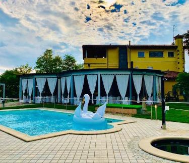 Located in Pradamano, 9 miles from Stadio Friuli, Villa Riviera Hotel Udine provides accommodations with a seasonal outdoor swimming pool, free private parking, a garden and a terrace. This 3-star hotel offers a bar. Providing free WiFi throughout the property, the non-smoking hotel features a hot tub. A buffet, continental or Italian breakfast is served at the property. Palmanova Outlet Village is 15 miles from the hotel, while Fiere Gorizia is 17 miles away. Trieste Airport is 27 miles from the property.