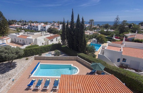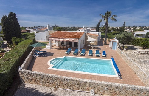 Villa Rocha makes for the ideal family holiday at any time of the year with its private swimming pool heating is available upon request at €175 per week, fully air-conditioned and central heating. The villa has covered terraces for outside dining, mature gardens that are fully fenced and private parking with an automatic gate for your privacy. The property is located adjacent to Rocha Brava Village Resort near Carvoeiro. The resort has its own restaurant, cafes, bars, spa, gym, 4 tennis courts and supermarket. The local beach of Vale Centeanes with 400 meters of golden sands is just 10-minute walk away. Villa Rocha has a comfortable open-planned lounge and dining room for 8 people, Satellite TV with English and German channels, DVD, Stereo and WiFi. The kitchen is fully equipped with a separate utility room. The bedrooms consist of 1 double with en-suite bathroom, 2 twin bedrooms with en-suite bathrooms and a twin bedroom with an adjacent bathroom. Carvoeiro is a fishing village halfway along the Algarve coast, about 45 minutes from Faro Airport. Over the last 15 years, grown to be a sizeable holiday resort. However, it has not lost the intrinsic charm of the place, as the development has been sympathetically done, keeping to low-rise buildings in the traditional Algarvian style. This cosmopolitan resort has a wide selection of restaurants and bars, a few night clubs, boutiques, banks, chemist, local facilities and fantastic beaches.