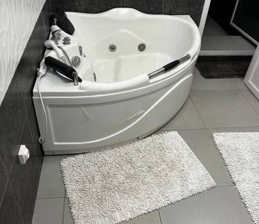 Food & DrinkTea/Coffee maker, Bottle of water, Chocolate/CookiesBathroomToilet paper, Bathtub, Towels, Bathtub or shower, Shower, Guest bathroom, Body soapMedia & TechnologyStreaming service (like Netflix), TV, Flat-screen TVGeneralIron, Fan, Ironing facilities, Air conditioning, Tile/Marble floor, Carbon monoxide detector, Trash cans, SoundproofActivitiesHot tubOutdoorsOutdoor dining area, Outdoor furniture, Balcony, TerraceKitchenHigh chair, Microwave, Stovetop, Electric kettle, Refrigerator, Washing machine, Toaster, Cleaning products, Coffee machine, Kitchen, Dining table, Wine glasses, Oven, KitchenwareLiving AreaDesk, Sitting areaBedroomExtra long beds (> 6.5 ft), Wardrobe or closet, Childrens' cribs, Walk-in closet, LinensViewView, Sea view, Quiet street viewAccessibilityEntire unit wheelchair accessible, Adapted bath, Entire unit located on ground floor, Upper floors accessible by stairs onlyBuilding CharacteristicsDetachedRoom AmenitiesAdapter, Fold-up bed, Drying rack for clothing, Non-feather pillow, Sofa bed, Socket near the bedEntertainment & Family ServicesChild safety socket covers |
