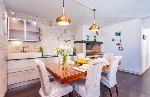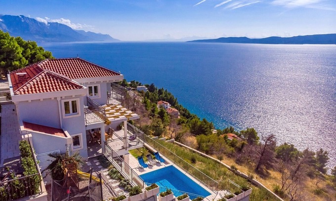 Villa S&A is a very comfortable accommodation for 6 people with pool and sea views with a heated private pool and amazing panoramic sea views of the crystal blue-turquoise water of the Adriatic sea and of island Brač, from every corner of the house. Your privacy on the whole property is guaranteed, and the area is very peaceful and quiet.