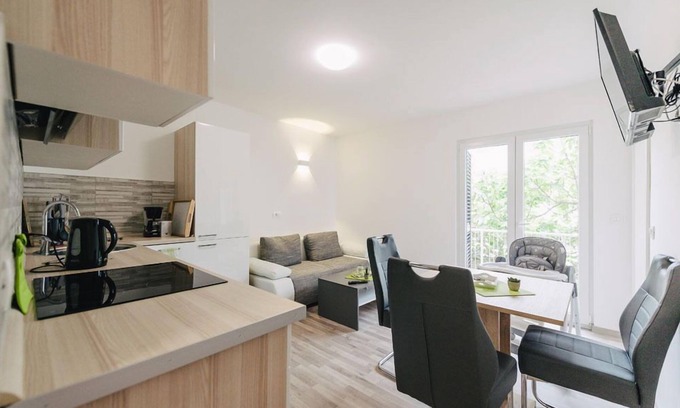 Our complete house with 5 apartments has been newly renovated and is equipped with all the amenities. Like dishwasher, washing machine, air conditioning, barbecue and a fully equipped kitchen.