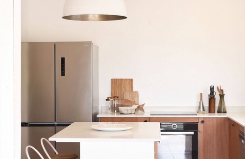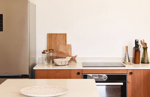 · An equipped kitchen with central island