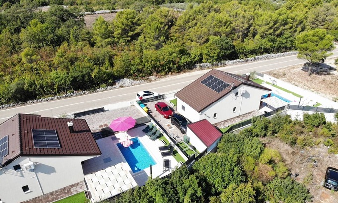 Villa Shaula 1 is a modern holiday retreat located in the tranquil village of Bilice, just a few kilometers from Šibenik in Croatia's Šibenik-Knin County. Built in 2020, this Mediterranean-style villa offers a peaceful setting ideal for families or small groups seeking relaxation and privacy.