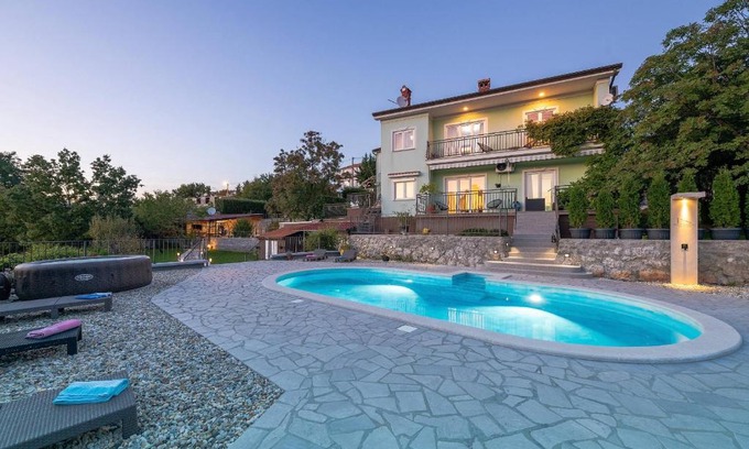 Boasting air-conditioned accommodation with a private pool, pool view and a patio, Villa Silvana is set in Marinići. This property offers access to a balcony, bowling in the bowling alley, free private parking and free WiFi. The apartment has 5 bedrooms, 4 bathrooms, bed linen, towels, a flat-screen TV with streaming services, a dining area, a fully equipped kitchen, and a terrace with mountain views. The apartment offers an outdoor fireplace. Guests at Villa Silvana can enjoy table tennis on site, or go cycling or hiking in the surroundings. HNK Rijeka Stadium Rujevica is 3.4 km from the accommodation, while The Maritime and History Museum of the Croatian Littoral is 6.7 km from the property. The nearest airport is Rijeka Airport, 32 km from Villa Silvana.