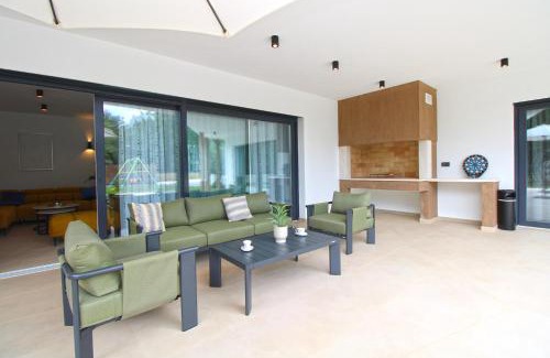Media & TechnologyTV, Satellite channels, Flat-screen TVGeneralTile/Marble floor, Air conditioning, Private entranceKitchenElectric kettle, Coffee machine, Stovetop, Refrigerator, Kitchenware, Microwave, Kitchen, Washing machine, Oven, Dining tableLiving AreaSitting area, SofaBathroomTowels, Toilet, Bathtub or showerOutdoorsPrivate pool, Barbecue, Outdoor furniture, TerraceBedroomWardrobe or closet, LinensViewGarden view |