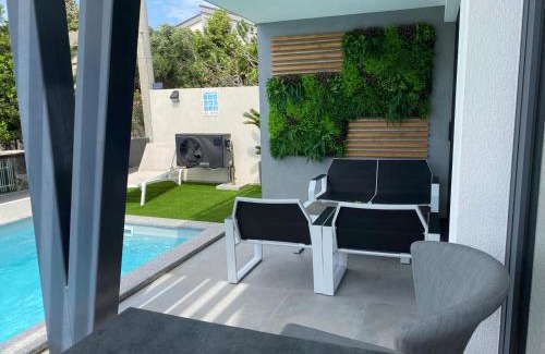 One mile from Trodražica Beach in Cesarica, Villa Skrisia provides accommodations with access to a hot tub, spa facilities, and steam room. This beachfront property offers access to a balcony, darts, free private parking, and free Wifi. The villa offers an outdoor swimming pool with a pool bar, as well as a sauna and a shared kitchen. Offering a terrace and sea views, the spacious villa includes 3 bedrooms, a living room, satellite flat-screen TV, an equipped kitchen, and 4 bathrooms with a walk-in shower and a hot tub. A private entrance leads guests into the villa, where they can enjoy some wine or champagne and fruit. This villa is allergy-free and non-smoking. During warmer months, you can make use of the barbecue facilities and eat on the private patio. For guests with children, the villa features an indoor play area, outdoor play equipment, and a baby safety gate. Cycling and walking tours can be enjoyed nearby, while a car rental service and water sports facilities are also available on-site. Zadar Airport is 63 miles away.