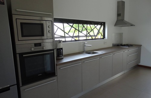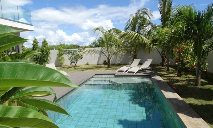Ideally located, 3 minutes walk from a paradisiacal beach, this new and completely secured villa is the perfect place for a convivial holiday as a couple, with family or friends. With its modern, fully equipped kitchen, dining room, living room with TV corner (satellite channels), 4 spacious bedrooms, all air-conditioned, 3 bathrooms equipped with showers and large dressing rooms you will have all the comfort for a successful stay. Guests can enjoy meals on the patio with views of the private pool. Enjoy the sunshine from the sunny balcony or the many sun loungers. And why not enjoy a good BBQ prepared in the large exotic garden with banana trees, coconut trees, palm trees, frangipani ... WIFI throughout the house. Common gym available. Friendly and helpful staff, reflecting the warm character of the Mauritians. The presence of a customer relationship forms the small plus of the house.