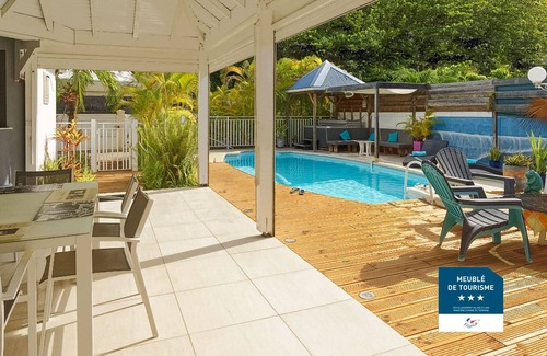 Vast stay of approximately 70 m2 bright and warm, widely opened on a terrace and on the swimming pool, with "carbet" covering the SPA and a space relaxation.