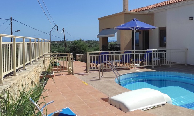 Enjoy the stunning panoramic views towards the sea and mountains from the covered veranda and the private pool. Relax in a tranquilly area, close to the beach and located in the vicinity of Rethymno town. When you feel comfortable you feel at home during your holidays in Greece.