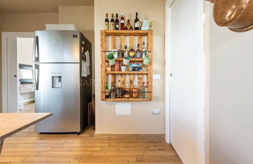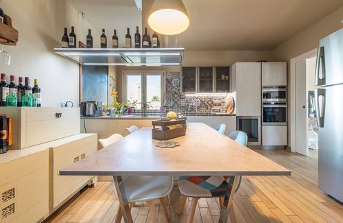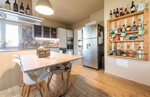The kitchen is elegant, well-equipped and modern with an induction hob, electric oven, wine cellar, dishwasher and coffee machine.