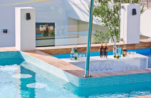 Step onto the expansive terrace and immerse yourself in the Mediterranean lifestyle. The outdoor space features a large heated infinity pool, perfect for relaxation or entertaining guests. The villa's privileged beachfront location ensures an unparalleled holiday experience with the soothing sound of the waves as your backdrop.