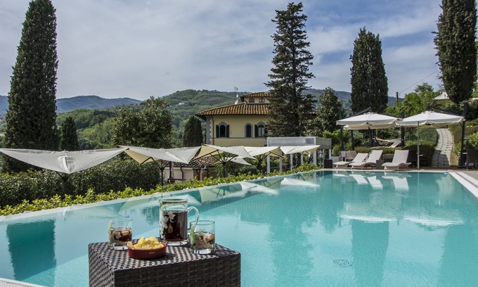 Villa Parri is a historic residence surrounded by greenery where olive oil is produced, in a private park of over 10 hectares with cypresses, old trees, a splendid terrace with an Italian garden, gazebo and an exclusive nature trail. An ideal place for those who want to combine a charming and relaxing holiday immersed in the classic Tuscan landscape with art tourism, to discover Tuscany. The villa dates back to the early 1800s, renovated in 2013, and houses apartments-suites. All are finished with valuable Tuscan frescoes and stuccos, coffered ceilings, have a private entrance and are equipped with satellite TV and Wi-Fi. The apartments have a modern full kitchen. In the park of Villa Parri you can find a panoramic swimming pool, a relaxation area with hydromassage and fitness area, a lemon house where in the morning a tasty breakfast buffet is served with local products and homemade desserts.