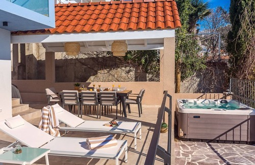 Villa Tadsi benefits from wonderful sea views from its private pool terrace. Inside, there are 5 bedrooms and 4 bathrooms, accommodating up to 8 guests.