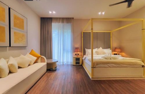 Villa Takiana - 4BHK pvt pool, Gym, 5mins to beach is a recently renovated villa in Anjuna where guests can make the most of its plunge pool, fitness center, and indoor pool. With pool views, this accommodation provides a balcony. The accommodation features a hot tub, free Wifi throughout the property, and full-day security. Featuring a terrace and mountain views, the spacious villa includes 4 bedrooms, 3 living rooms, flat-screen TV, an equipped kitchen, and 6 bathrooms with a walk-in shower and a hot tub. The air-conditioned unit at the property features a bidet and a dressing room. The villa offers bed linen, towels, and daily room service. An à la carte, continental, or vegetarian breakfast is available at the property. There is an on-site bar. A car rental service is available at the villa. Ozran Beach is 1.7 miles from Villa Takiana - 4BHK pvt pool, Gym, 5mins to beach, while Chapora Fort is 1.9 miles away. Manohar Parrikar International Airport is 15 miles from the property, and the property offers a paid airport shuttle service.