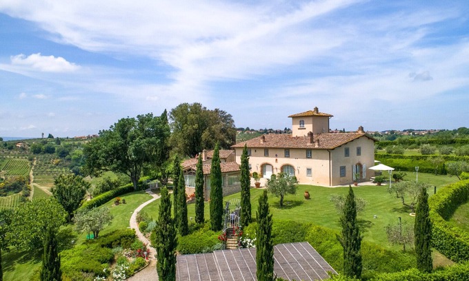 Villa Tavernelle is a luxury villa, with pool and spa, situated between Florence and Siena in a in a beautiful, hilly countryside with villages where time seems to stand still, forts, country churches and country villas: a countryside rich not only with beauty and history, but also with unique products which have made Tuscany in all the world. It is ideal for families with children or groups of friends and has recently been reconstructed uniting the original traditional style with modern luxury. 5 minutes from the town Tavarnelle Val di Pesa, the spacious and airy villa is the perfect place for those who are looking for a place to relax.