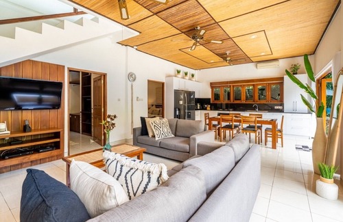 The villa has its own pool, garden, garage, laundry, and sundeck with pool lounges and outdoor tables and chairs. Wi-Fi is also included in your stay.