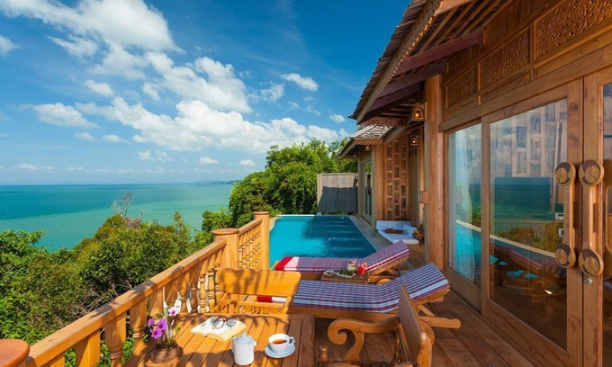 Elevate your escape to unparalleled heights at Villa Thanom. Perched on a scenic hillside, this exquisite retreat offers panoramic sea views that captivate from every angle. Immerse yourself in serenity with a private pool and Jacuzzi, complemented by a spacious patio and an enchanting outdoor sunken bathtub. The 150 sq.m. villa features a master bedroom and a separate living area, all designed to harmonize with the breathtaking natural surroundings.