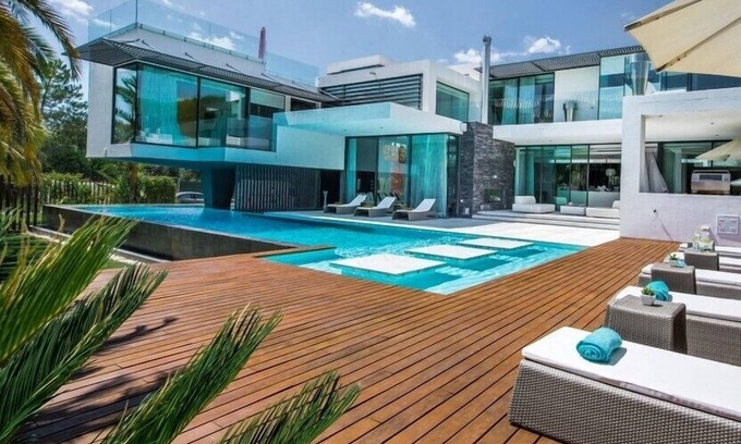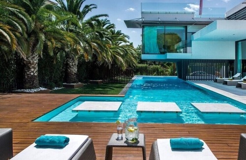 The lower basement area is truly unique: a glass wall reveals the blue waters of the swimming pools´ depths. There is a plush cinema area, utility room, storage space, a guest shower room, steam room, cloakroom and garage in addition. The outdoor area, including a large roof terrace with jacuzzi are further impressive spectacles. The swimming pool and surrounding sun terraces plus BBQ are ideal for enjoying the Algarve sunshine. The pool can be heated at an additional charge on request.