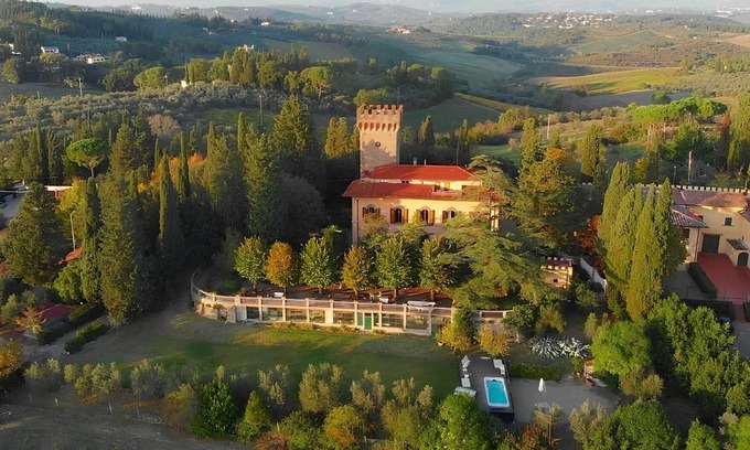 Set in the heart of the Chianti region, just 12 km from Florence, this elegantly decorated villa offers stunning countryside views, perfect for those seeking an authentic Tuscan experience. Ideal for couples, families, or groups of friends, Villa Torre Alberghieri dates back to the 19th century and showcases a refined neoclassical style.