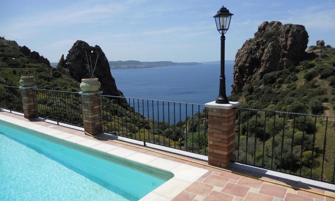 A 14-minute walk from Spiaggia di Portu Banda in Nebida, VILLA TRAMONTI SUL MARE provides accommodations with access to a solarium and open-air bath. This property offers a pool with a view, free Wifi, and free private parking. Guests can have a drink at the bar. Leading onto a balcony with pool views, the air-conditioned vacation home consists of 3 bedrooms. Providing a terrace with sea views, this vacation home also provides guests with a satellite flat-screen TV, a well-equipped kitchen with a dishwasher, an oven, and a microwave, as well as 3 bathrooms with a walk-in shower and a hair dryer. The property has an outdoor dining area. Spiaggia di Portu Ferru is 1.5 miles from the vacation home. Cagliari Elmas Airport is 42 miles away, and the property offers a paid airport shuttle service.