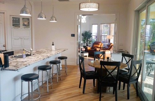 The Master Bedroom located on the upper floor off the mezzanine has a king bed and a large bathroom with a shower as well as a Jacuzzi tub. The second of 2 large safes located in the Master Bedroom Closet allows guests to set the lock/unlock code for your valuables, laptops, etc. The gound floor has the second and third ensuite bedrooms, a guest bathroom and the rest of the living space. The second bedroom also has a king-size bed and 'en suite' bathroom with shower. The third bedroom has a king size bed and also an 'en suite' bathroom with shower. The fourth bedroom located on the upper floor next to the masterbath has a queen bed providing comfortable total accommodations for eight people. There is also a day bed with a pull out trundle bed that sleeps 2 more on the mezzanine as well as a couch on the mezzanine that holds a foldout twin bed for an eleventh person. The fourth bathroom (guest bath) including a shower is located between the second and third bedroom on the ground floor and has access from the main living area as well as the pool/lanai.