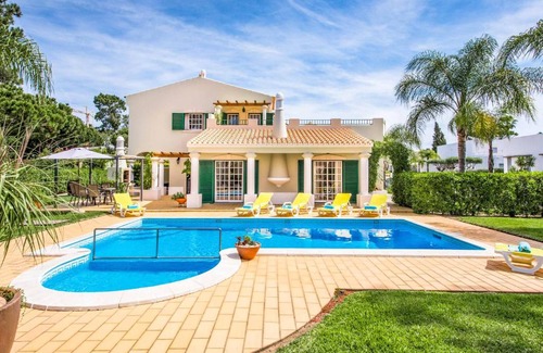 Just a 18-minute walk from Praia de Vilamoura and 1.2 miles from Vilamoura Marina, Villa Vargues features accommodations in Quarteira with a garden. This property offers access to a balcony, free private parking, and free Wifi. The villa has an outdoor pool and an indoor pool. Offering direct access to a patio, the air-conditioned villa consists of 3 bedrooms. Featuring a terrace with garden views, this villa also includes a satellite TV, a well-equipped kitchen with a dishwasher, an oven, and a microwave, as well as 3 bathrooms with a bidet. The accommodation is non-smoking. Church of São Lourenço is 7.5 miles from the villa, while Old Town Square is 14 miles from the property. Faro Airport is 15 miles away.