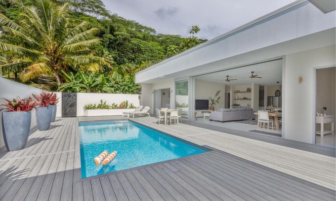 Villa Varia offers accommodations in Rarotonga, a 4-minute walk from Black Rock Beach. This property offers access to a terrace and free private parking. The villa provides a pool with a view and luggage storage space. With free Wifi, this villa offers a flat-screen TV, a washing machine, and a fully equipped kitchen with a dishwasher and oven. Guests can enjoy a meal on an outdoor dining area while overlooking the pool views. The accommodation is non-smoking. Guests can make the most of the warm weather with the property's barbecue facilities. Rarotonga International Airport is 0.6 miles away, and the property offers a paid airport shuttle service.