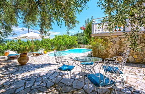 The villa's private pool (9.5m x 4m), children's plunge pool, and sun terrace provide the perfect space to relax under the Paxos sun. Enjoy al fresco dining on the shaded terrace, prepare meals on the BBQ, or simply unwind with views of the sea, garden, and surrounding countryside.