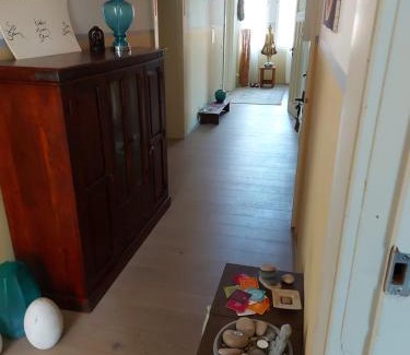 Food & DrinkTea/Coffee maker, Bottle of waterBathroomWalk-in shower, Private bathroom, Shower, Bathtub or shower, Toilet paper, Hairdryer, Toilet, TowelsMedia & TechnologyFlat-screen TV, TVKitchenElectric kettle, Dishwasher, Stovetop, Coffee machine, Oven, Kitchen, Toaster, Refrigerator, Dining table, Wine glasses, KitchenwareLiving AreaSofa, DeskOutdoorsTerrace, Patio, Outdoor furniture, Outdoor dining areaGeneralPrivate entrance, Trash cans, Hardwood or parquet floors, Smoke Alarm, HeatingViewGarden view, ViewBedroomLinens, Wardrobe or closetAccessibilityUpper floors accessible by stairs onlyBuilding CharacteristicsPrivate apartment in buildingRoom AmenitiesSocket near the bed, Clothes rack |