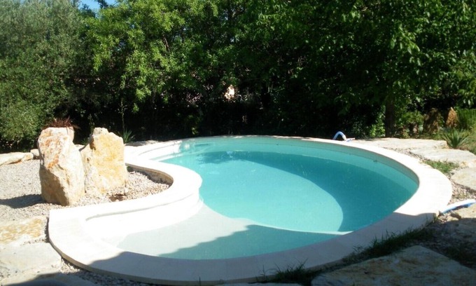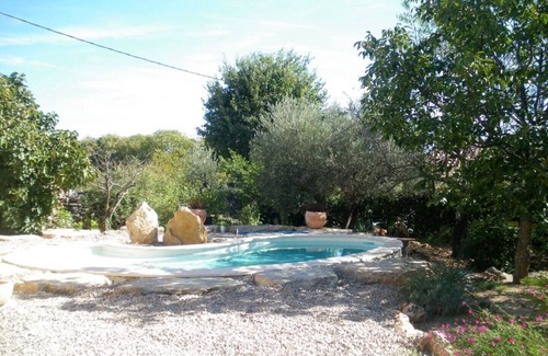 Relax on a deckchair in the countryside by the pool, in a medieval village near Montpellier and Ganges, terrace with pool, view of vegetation and Pic St Loup and with the possibility of accommodation for 8 people, or even 9 subject to an increase in pro rata temporis of the number of people over eight.