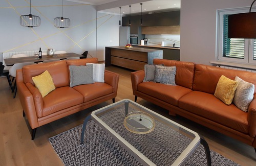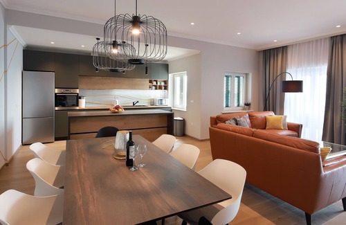 This amazing property has 170m2. It is located on a beautiful seaside (district Pecine) on the 2nd floor. It has 3 spacious bedrooms, 3 bathrooms + one additional toilet, kitchen, dining room and living room. Each bedroom has different theme, each cosy, beautifully furnished. The terrace overlooking Kvarner bay and Kvarner islands is breathtaking. This luxurious property offers the opportunity to enjoy your holiday on a beautiful coast and enjoy the sea scent and sea sounds from every room.