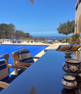 Villa vue mer et campagne offers accommodations in Essaouira, 15 miles from Golf de Mogador. This property offers a private pool, free Wifi, and free private parking. Outdoor seating is also available at the villa. Offering direct access to a balcony with mountain views, the spacious air-conditioned villa consists of 3 bedrooms. Featuring a terrace with sea views, this villa also includes a satellite flat-screen TV, a well-equipped kitchen with a dishwasher, an oven, and a microwave, as well as 3 bathrooms with a walk-in shower and bathrobes. There's also a seating area and a fireplace. The nearest airport is Essaouira Mogador Airport, 21 miles from Villa vue mer et campagne.