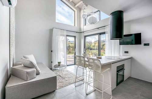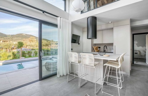 Welcome to Villa Wind, a charming villa right in the middle of two picturesque Lefkas villages. This delightful home away from home has three neighbouring villas in the Four Elements enclave, ideal to bring along an extended group of friends and family for a big holiday together. The heart of the villa unfolds in an open-plan kitchen and lounge, creating a welcoming space ideal for to putting your feet up after whipping up some culinary delights.