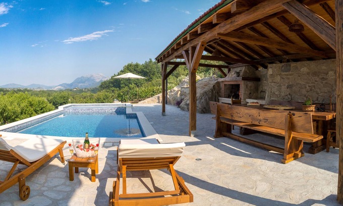 Villa with a view to nature, hydromassage heated pool, authentic stone property | Villa in Omis