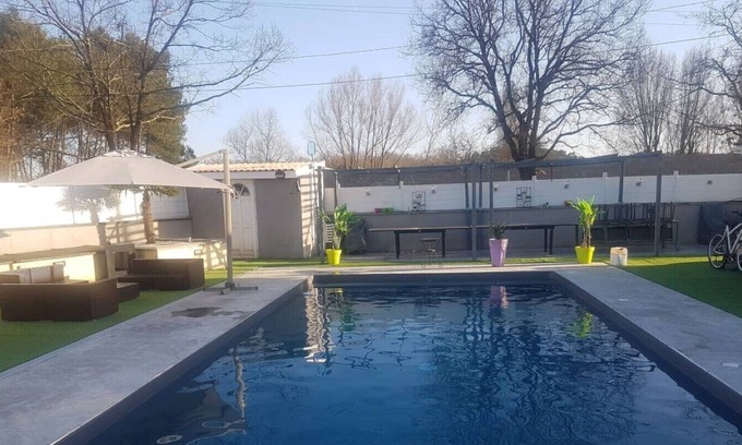 Superb villa located 15 minutes from Bordeaux and 15 minutes from Libourne less than an hour from the ocean beaches closed parking for 3 vehicles and free parking nearby terrace that can accommodate dozens of people Jacuzzi by the heated indoor sound pool for your evenings with friends (no music outside)