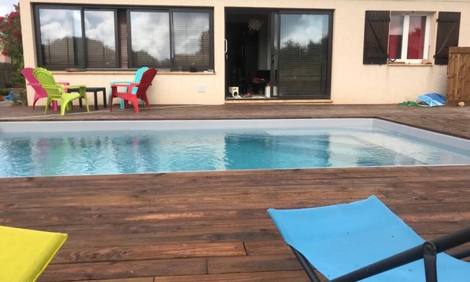 The villa is located in a very quiet residential area. It has 4 sides and 2 terraces which allow you to have shade or sun whatever the time of day.