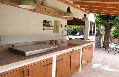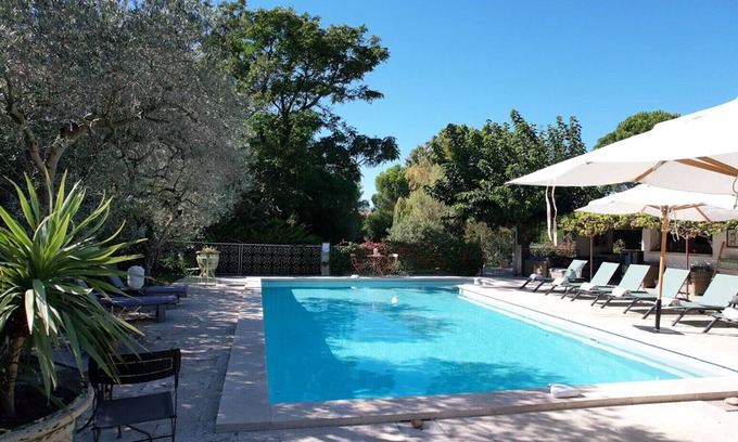 This holiday rental with a private and heated swimming pool, tennis and table football is located close to the village centre of Fontvieille (1.5 km), in the municipality of Tarascon, on the border between the Camargue Regional Nature Park and the Alpilles, in the Bouches-du-Rhône department, in ProvenceThis villa is ideal for family holidays.It is an island of relaxation in a unique setting.A pond with fish and ducks offers an idyllic atmosphere.This villa also has all the comfort one can expect from a high-end villa.A magnificent garden is at your disposal with relaxation spaces, a splendid swimming pool with a pool house, indoor and outdoor games (tennis, football field, pool house).This magnificent villa with a private and heated swimming pool, tennis and table football in Fontvieille is located 1.5 small kilometres from the village centre and the first shops and restaurants.Known for the famous "Letters from My Mill" by Alphonse Daudet, Fontvieille is a typical Provençal village.Culturally speaking, Fontvieille and its surroundings are rich in history and heritage.You will be able to visit the writer's mill, discover the Montauban castle and the Montmajour abbey, architectural jewels whose construction began in the 11th century.Hiking or mountain bike trails are accessible from this holiday location, in the Les Alpilles nature park and suitable for all levels.During your family holiday in Provence, you will also explore exceptional historical sites! These are as many typical towns and villages that are accessible and must not be missed under any circumstances.A few kilometres from Fontvieille and this magnificent villa with a private and heated swimming pool, tennis and table football, you can set off to discover the thousand and one wonders of Provence! Arles (5km) with its arenas, Les Baux-de-Provence (5km), its medieval village and castle, with panoramic views of the Alpilles, Saint-Rémy-de-Provence (10km) with its Roman site of Glanum or even the Saintes-Maries-de-la-Mer (50km) to discover the Camargue, observe the pink flamingos, horses and bulls in their natural habitat.On the culinary side, Fontvieille is not left behind! You are surrounded on all sides by the numerous wine and olive oil estates of Provence.Olive oil and wines make up this delicious terroir which, each season, delights the taste buds of Provençals and visitors alike.On the practical side, Fontvieille has very convenient local shops within walking distance from this villa and a supermarket.The first hypermarkets are located in Arles, 5km away.For a TGV arrival, prefer Arles or Avignon. For an arrival by air, the nearest airports are those of Marignane (77km) and Nîmes (35km).EXTERIORThis magnificent villa with a private and heated swimming pool, tennis and table football in Fontvieille is surrounded by a fenced garden (6,000m2)The garden was designed by a landscape architect.The objective is to ensure dream holidays in a magical setting!This magnificent villa with a private and heated swimming pool, tennis court and table football in Fontvieille offers unique services:A dining area under a hundred-year-old tree, in front of the living spaces, offering total shade and a view of the property's magnificent private pond and the poolhouse.A heated swimming pool (13m x 5m, depth from 1m to 1.7m, secured by an alarm, in service from 1st April to 31st October) accessible by steps where it is pleasant to relax.Comfortable sun loungers are also at your disposal.A relaxation area accessible from April to September, with a fitted pool house (American fridge, dishwasher, sink, barbecue, plancha, dining table, double garden lounges, table football and ping-pong).A bathroom with shower and toiletA landscaped football cage area for beautiful matches ahead.A tennis courtA ping-pong tableA pétanque pitchINTERIORThis magnificent villa with a private and heated swimming pool, tennis and table football in Fontvieille has an area of 200m².It is on two levels.It benefits from a family and practical style decoration.It offers great comfort.GROUND FLOOR:A kitchen that opens onto the dining room.It is equipped with a fridge, an induction hob, kitchen utensils, cleaning products, an oven, a microwave, a dishwasher, a kettle, a toaster and a filter coffee machine and a Nespresso coffee machine.A cellar (5m²) with washing machine and tumble dryer.An air-conditioned living room with fireplace, TV and satellite channels (SFR bouquet).An air-conditioned bedroom with a double bed in 160 and its adjoining bathroom (2 washbasins, bathtub, shower, hair dryer and WC).An independent WC with hand basin.FIRST FLOOR:3 bedrooms:An air-conditioned room with a double bed 160 opening onto a pleasant terrace overlooking the pond and gardenAn air-conditioned room with a double bed 160 and 3 single beds 90An air-conditioned room with a double bed 160.A bathroom with a hairdryer, a washbasin, a bathtub, a bidet and a shower.An independent toilet.Maximum accommodation: 11 peopleEnd of stay cleaning: £280;Deposit: £500.Sheets, tea towels, tablecloths, towels and pool towels included.1 baby travel cot available.Pets allowed: £50 per animal (2 maximum)Tourist tax according to current rates.Electricity to be paid additionally according to consumption at the end of the stay.Water provided by the house is borehole water filtered by UV devices.The owners recommend buying bottled water for your comfortECO ACTIONThe house has a ground floor bedroom and it is possible to move easily through the living areas without steps.However, the bathroom facilities are not at all adapted for wheelchair users.ACCESSIBILITYImplementation of selective sortingThe house is equipped with low-consumption bulbsWatering done in the evening with grace through irrigation channels